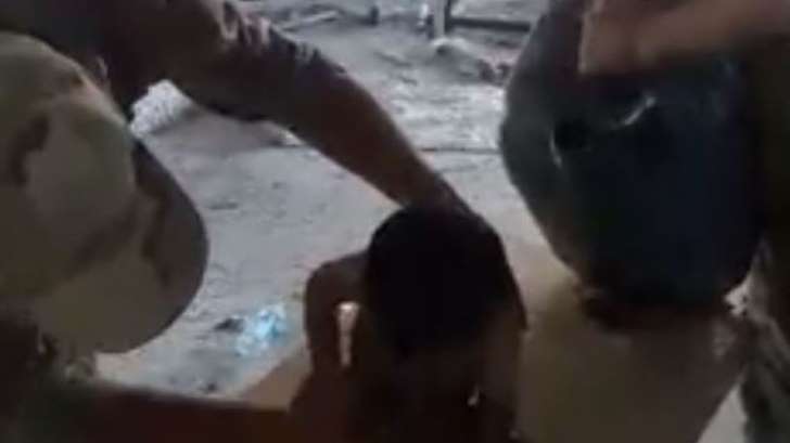 伊拉克部队射击的镜头显示士兵们从一岁的男孩身上清洗污垢,然后握住头,将水倒入嘴里。